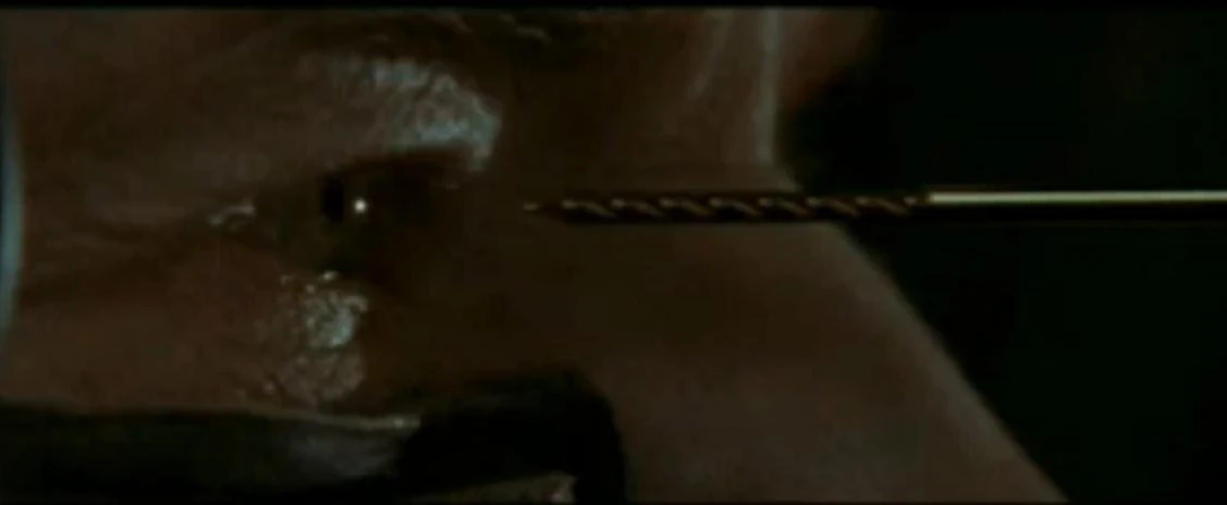 Drilling through the pupil as evidenced in (Star Trek: First Contact).